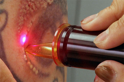 Uno de ellos es por medio de la utilización del láser, que ataca directamente a las partículas de tinta sin afectar el resto del tejido circundante.