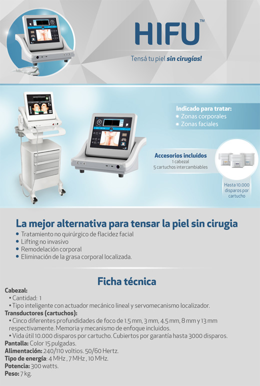 Fue en Francia en el año 2002 que se empleó el HIFU en un equipo para tratar adiposidad localizada y celulitis, mientras que en el 2008 los Estados Unidos comenzaron a desarrollar un aparato que emita HIFU para la flacidez facial.