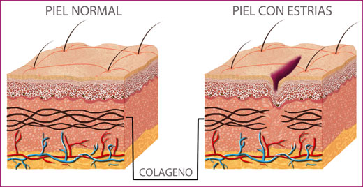 Las estrías son lesiones lineales cutáneas que se generan por la ruptura de las fibras elásticas de la dermis, producto del estiramiento.