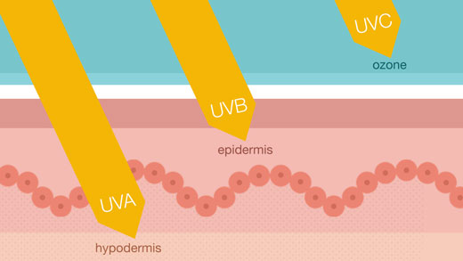 Para describir los efectos sufridos sobre la piel, la radiación UV se divide en tres tipos según el rango de longitudes de onda que abarque: