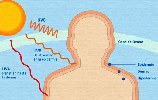 Tipos de radiación UV y efectos cutáneos