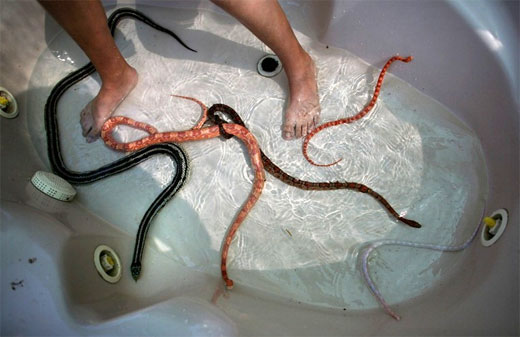Snake MassageY, por qué no, a todos aquellos adeptos a las excentricidades que se animen a vivir la experiencia de recibir un relajante masaje con serpientes.