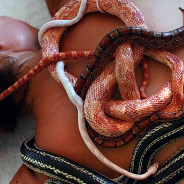 Snake MassageY, por qué no, a todos aquellos adeptos a las excentricidades que se animen a vivir la experiencia de recibir un relajante masaje con serpientes.